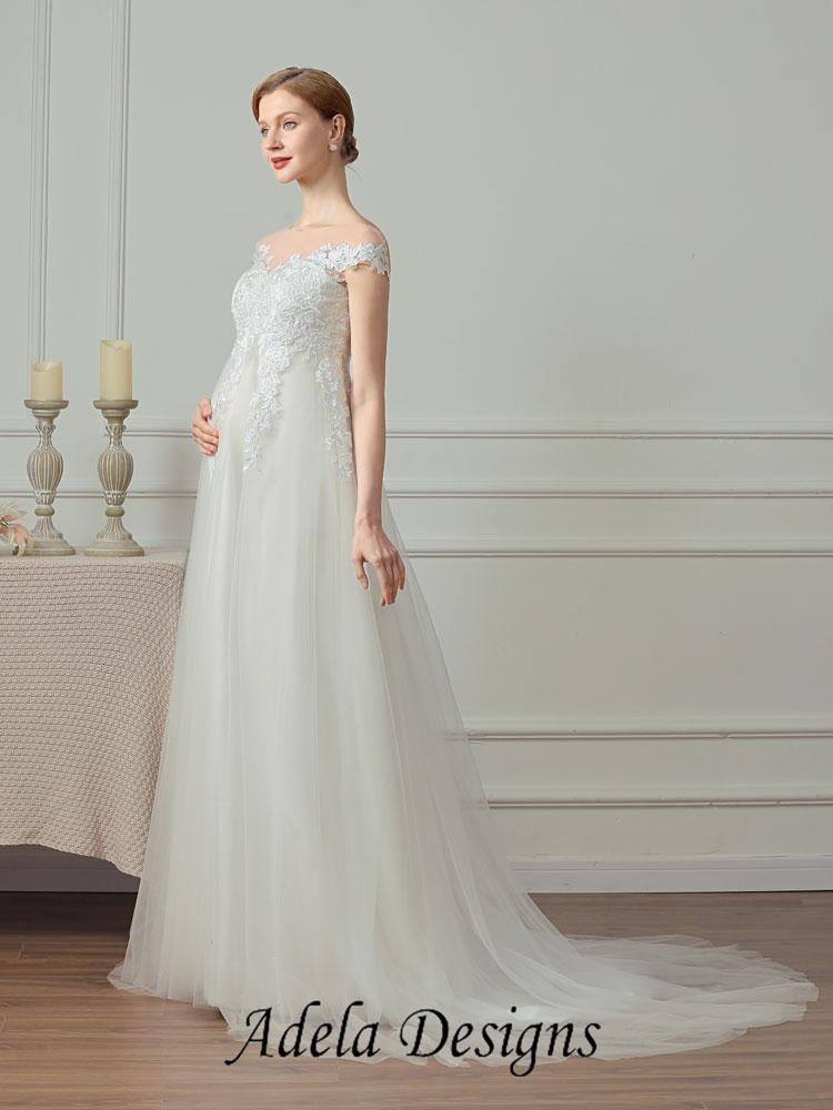 Robe de mariée A-line en dentelle & tulle — maternité, taille Empire