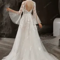 Les manches en dentelle volumineuses ajoutent une touche romantique, tandis que le dos trou de serrure encadré de fleurs crée une finition spectaculaire et photogénique.