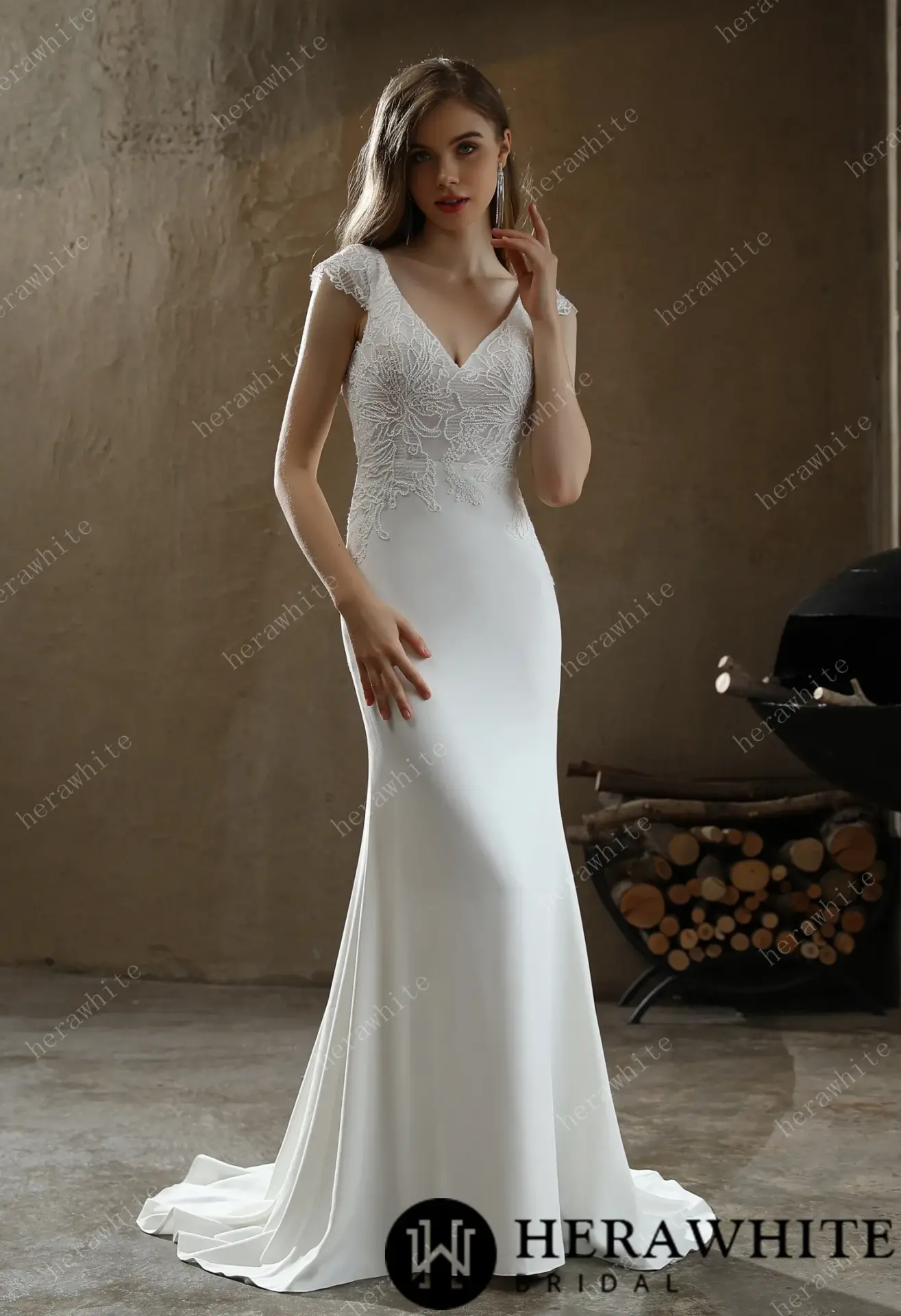 Robe de mariée Herawhite fourreau en crêpe