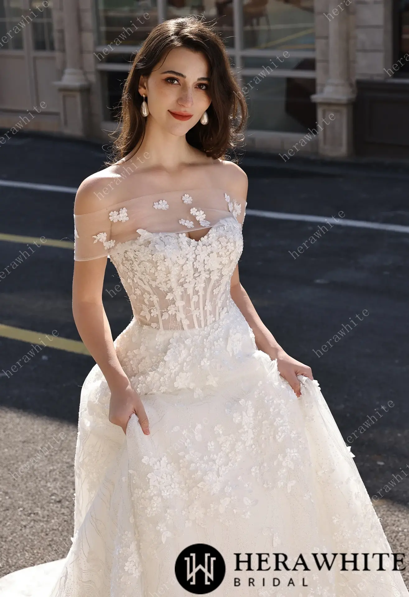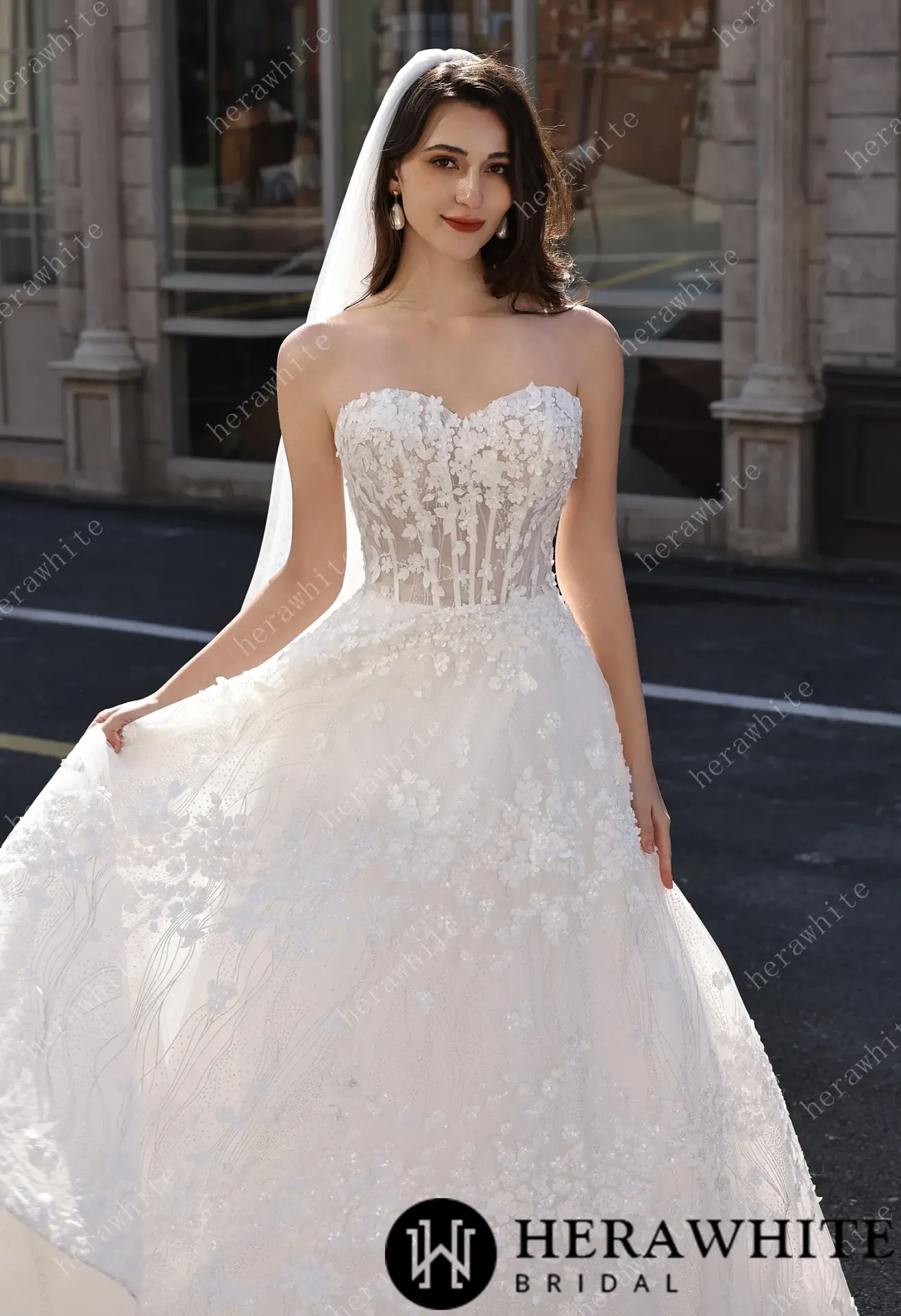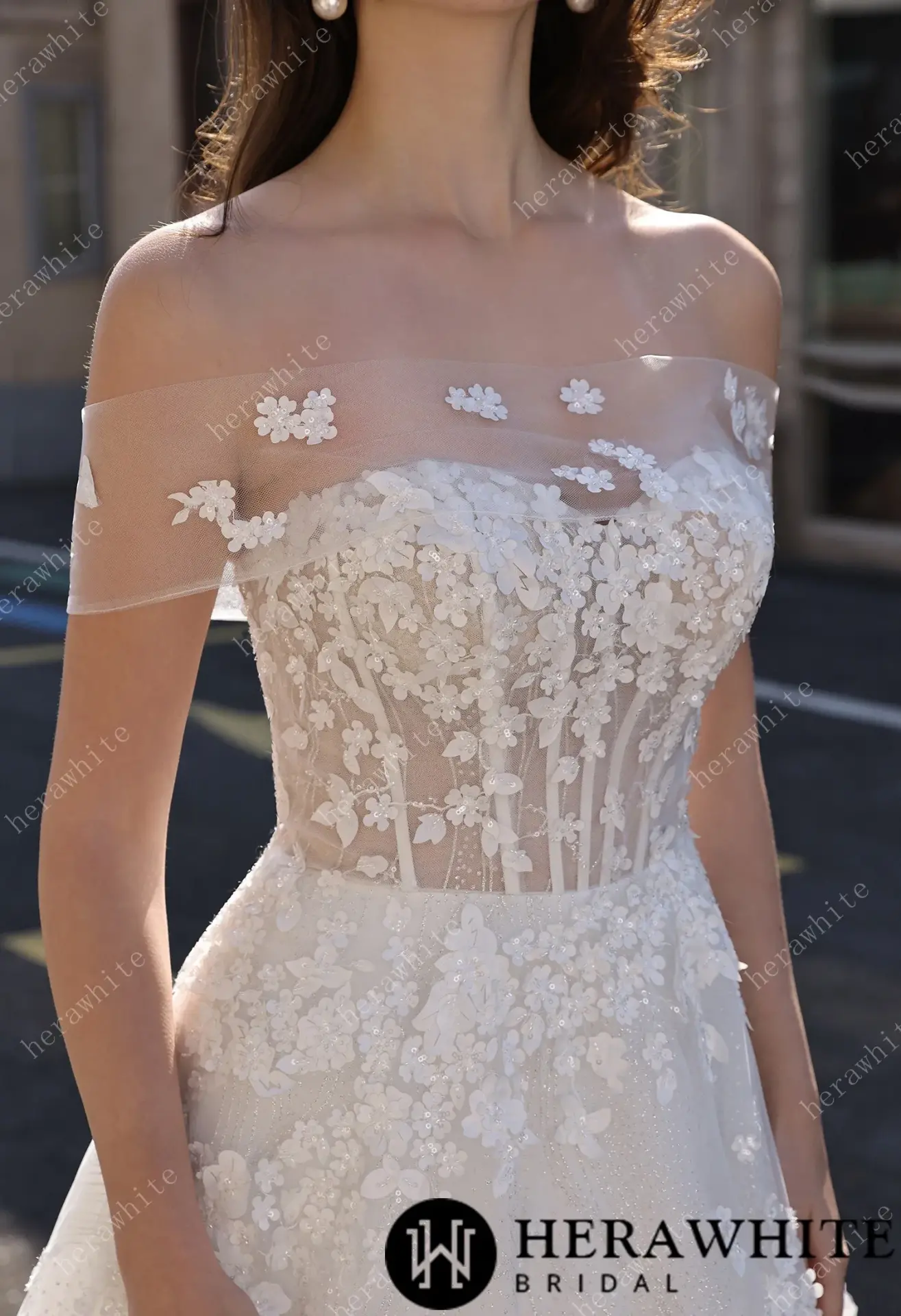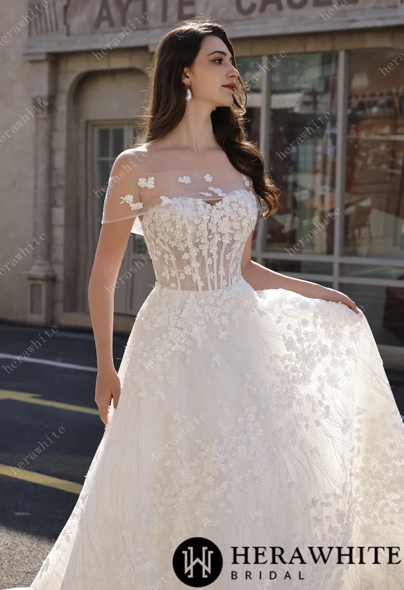 Robe de mariée florale A-line bustier transparent HeraWhite