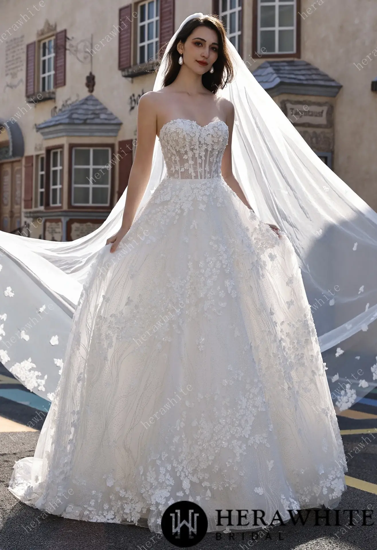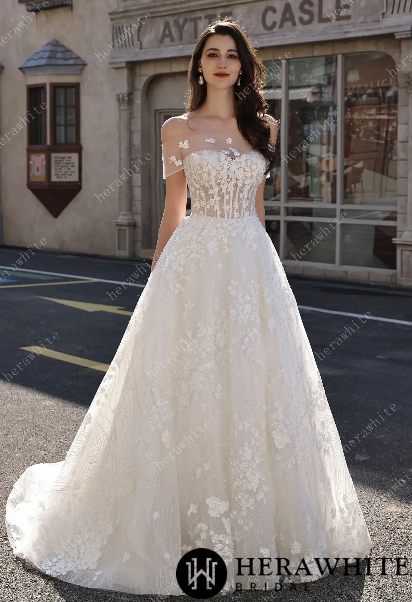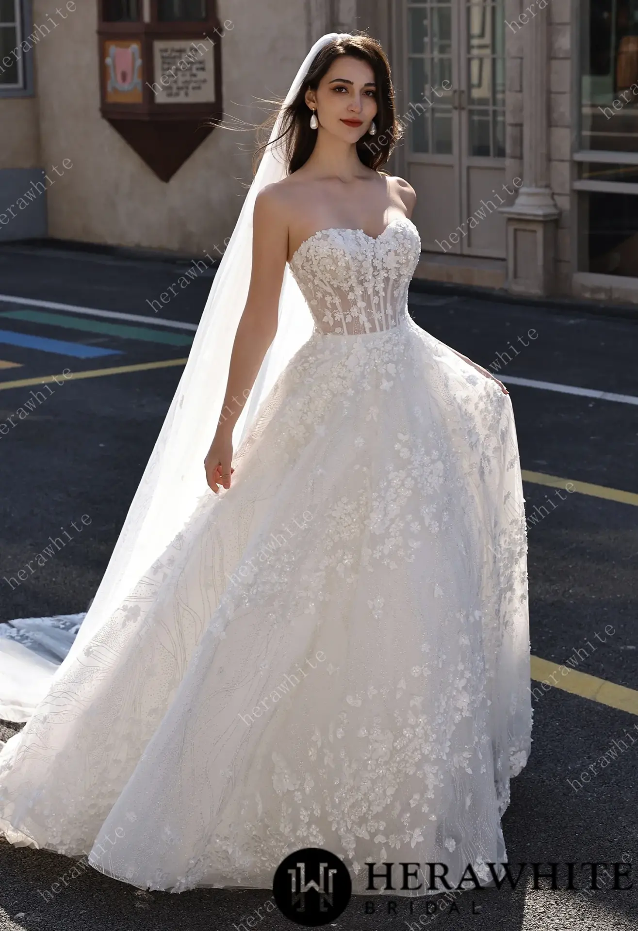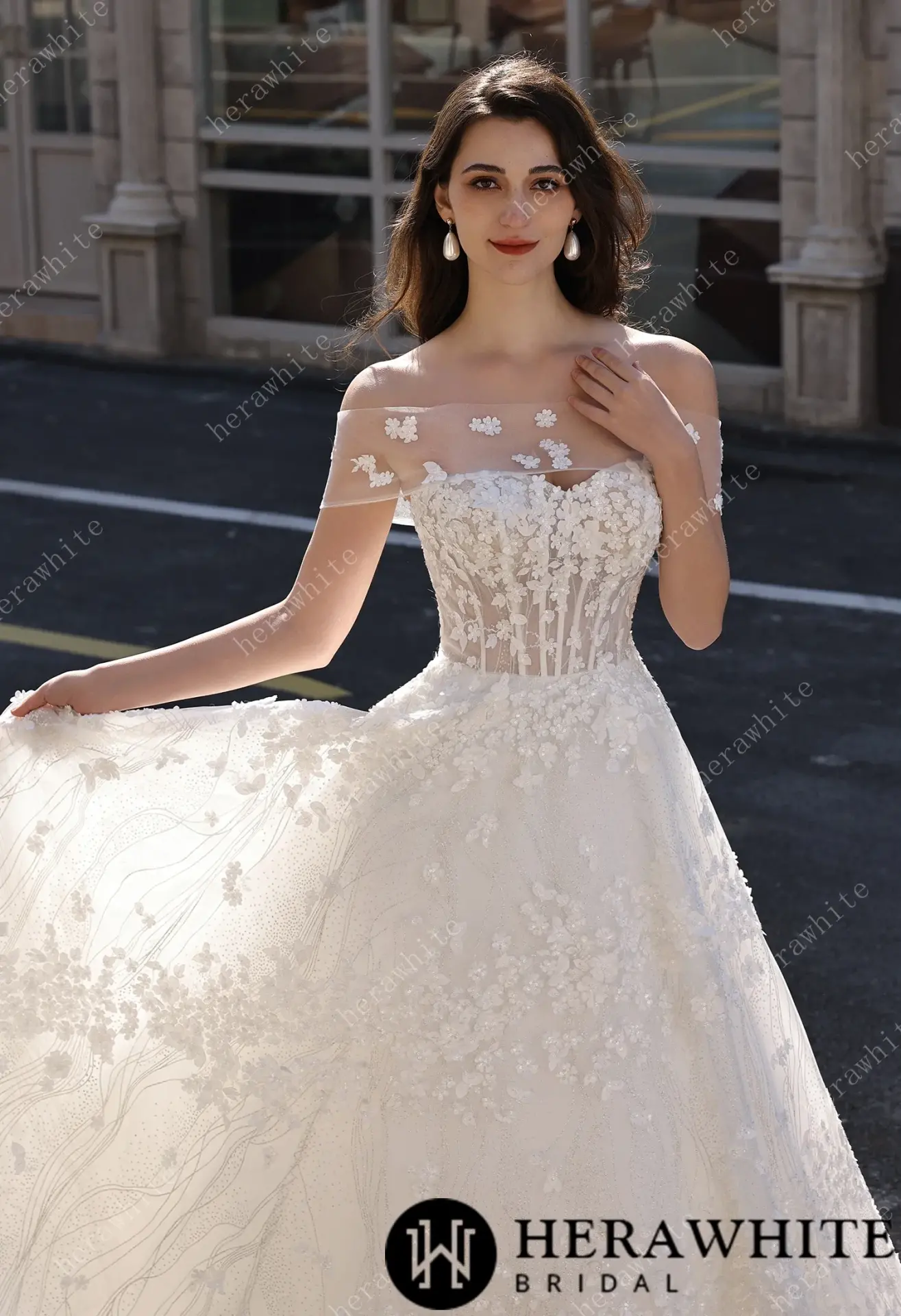 Robe de mariée florale A-line bustier transparent HeraWhite