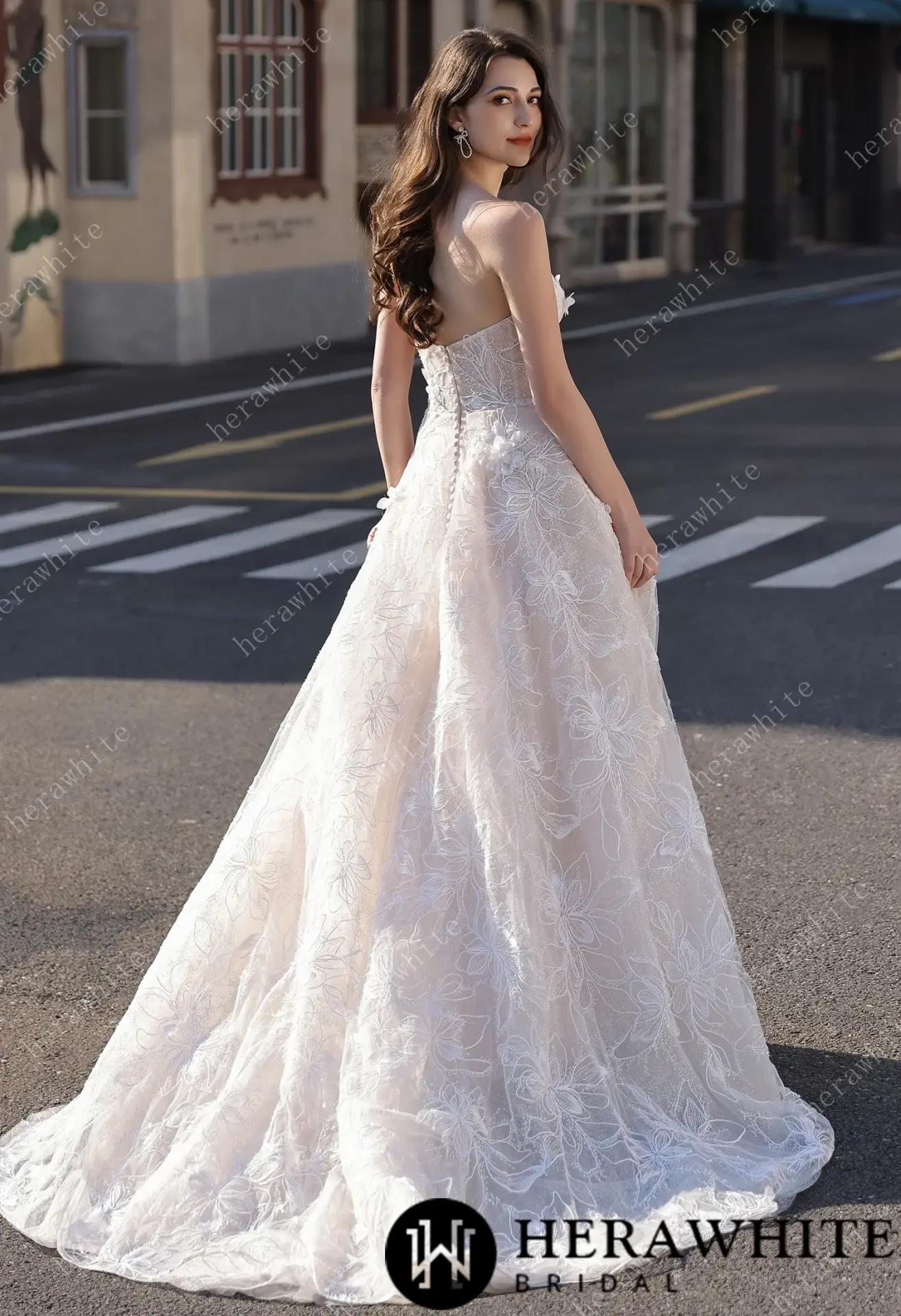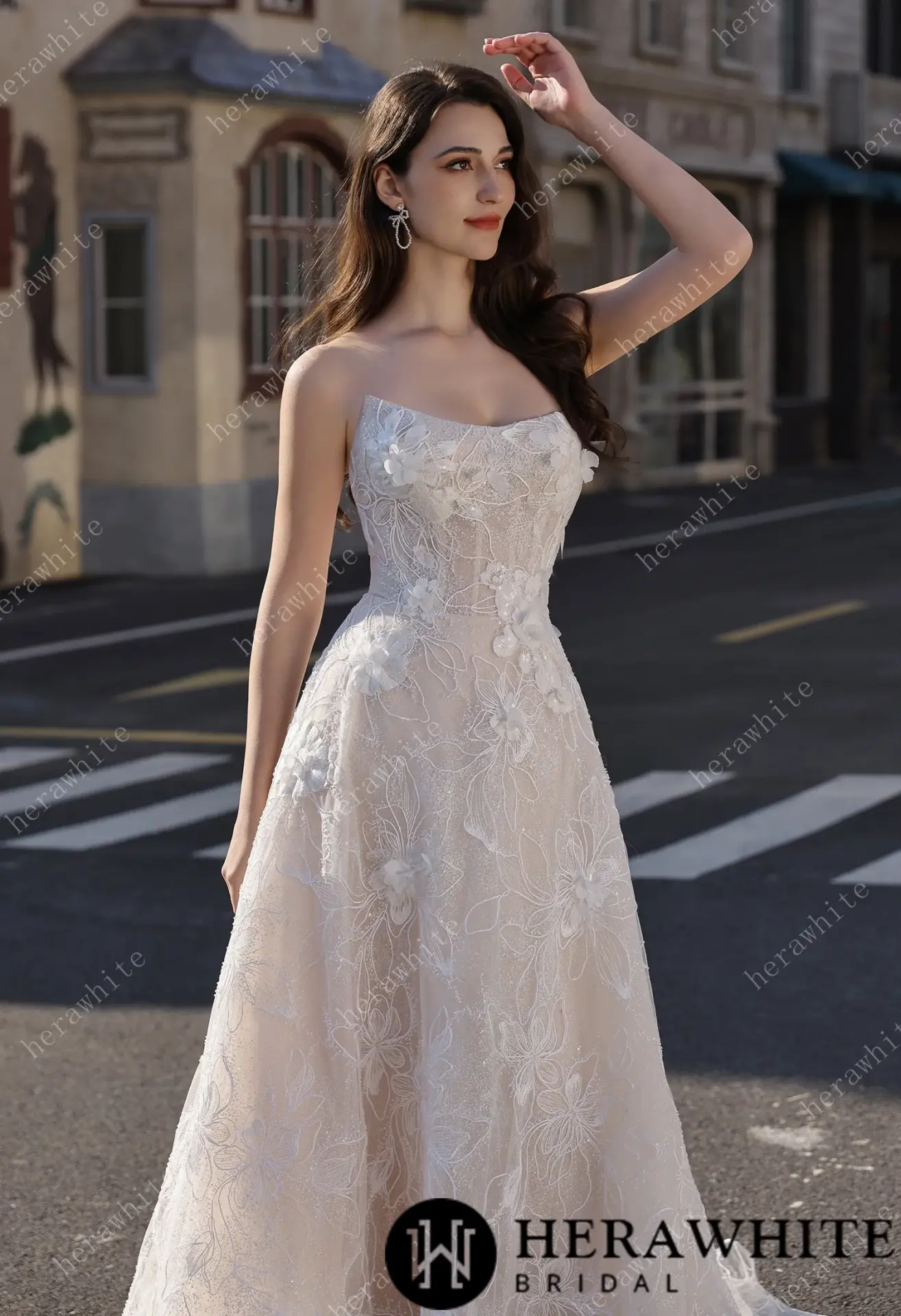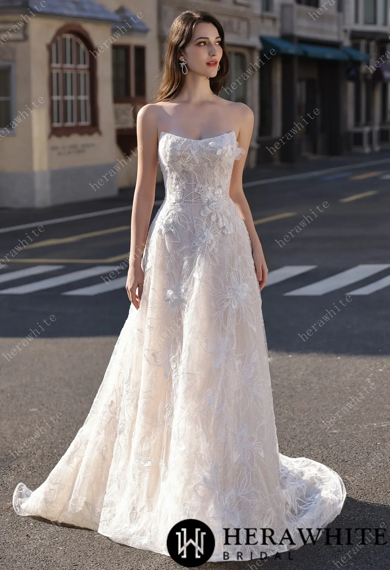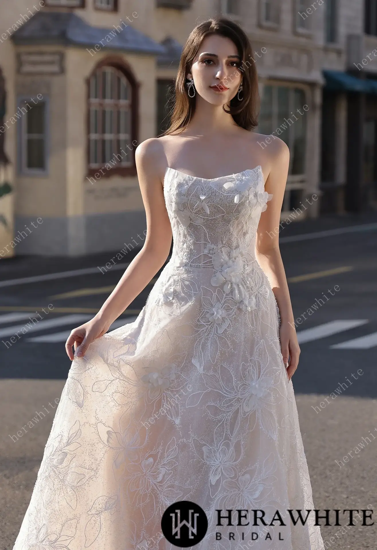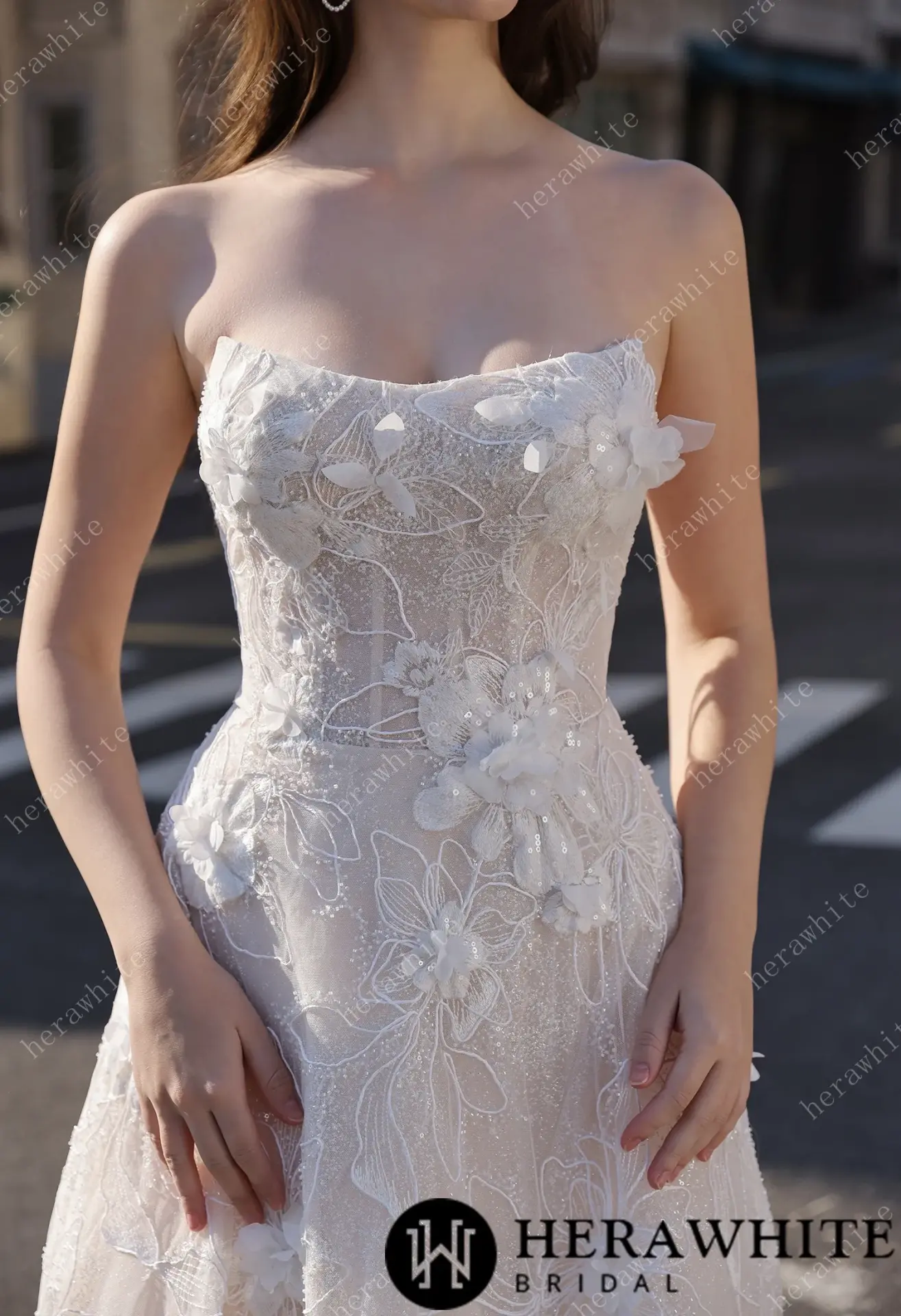 Robe de mariée florale A-line bustier transparent HeraWhite