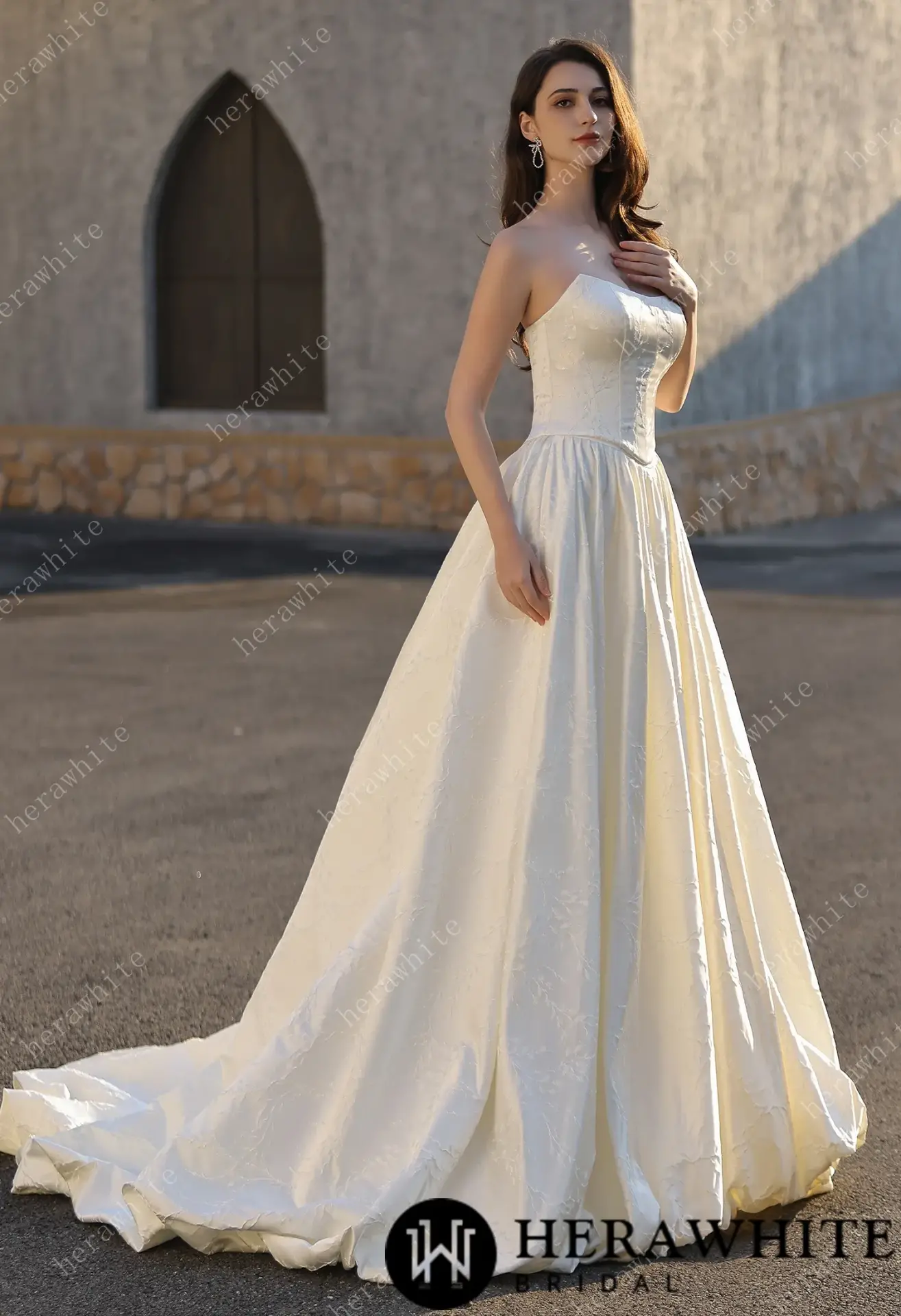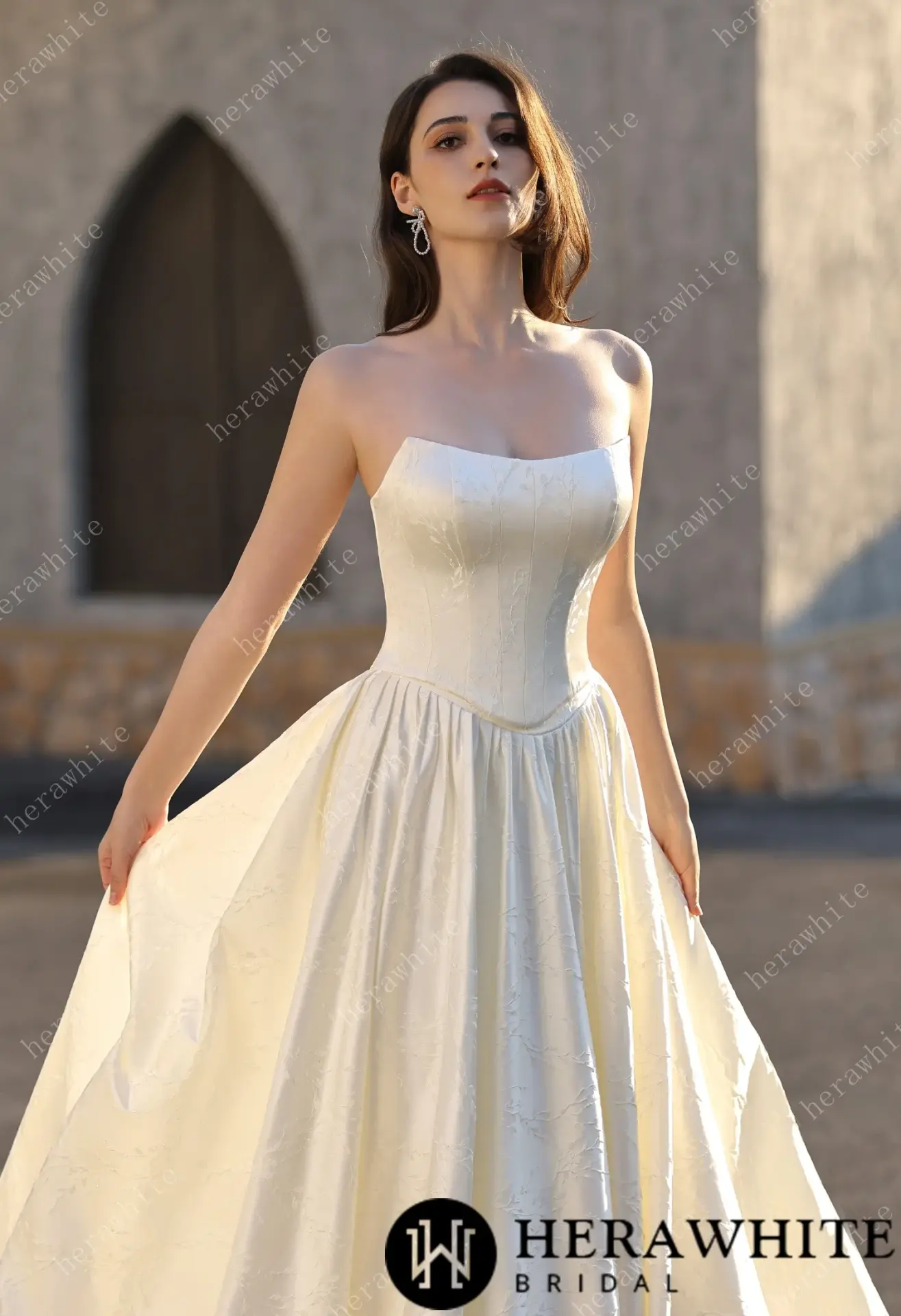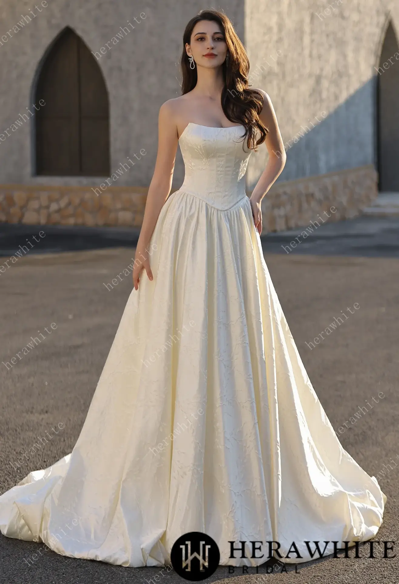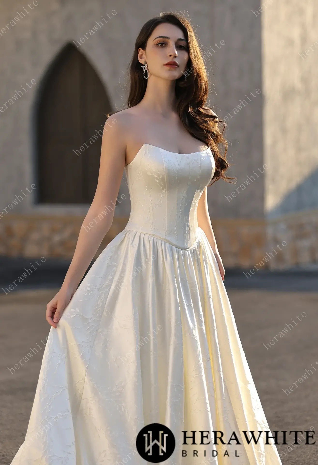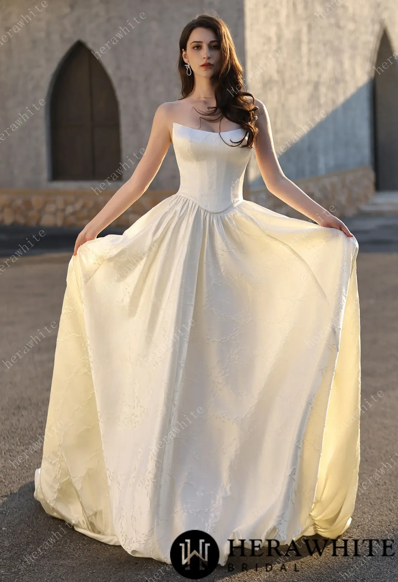 Robe de Mariée Herawhite Bustier en Jacquard Satin avec Jupe Princesse – Modèle Exquisite