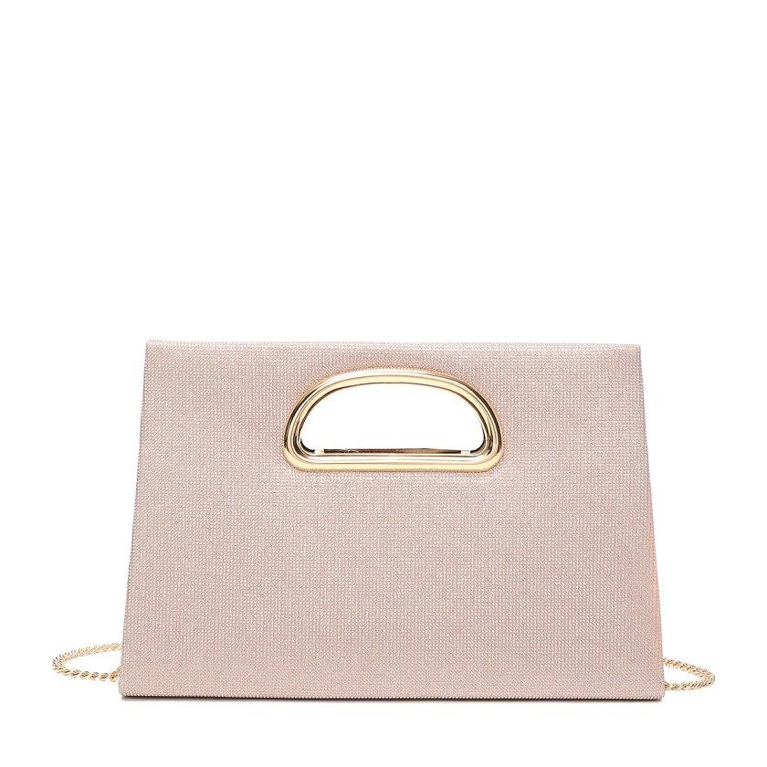 Cette pochette femme avec poignée en ton champagne conjugue élégance et raffinement discret, parfaite pour vos soirées ou événements habillés.