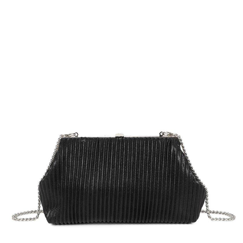 Ce sac à main avec tissu brillant en teinte argentée allie élégance et reflets lumineux, parfait pour rehausser vos tenues de soirée ou de mariage.